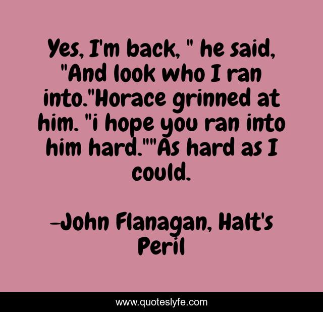 "John Flanagan, Halt's Peril Quotes." Quoteslyfe.com, 2025. Sat. 06 Dec. 2025. <https://www.quoteslyfe.com/quote/Yes-I-m-back-he-said-And-40525>.