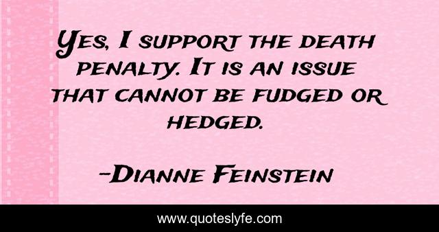This page presents the quote "Yes, I support the death penalty. It is an issue that cannot be fudged or hedged.". Author of this quote is Dianne Feinstein. This quote is about support, death penalty, yes,.