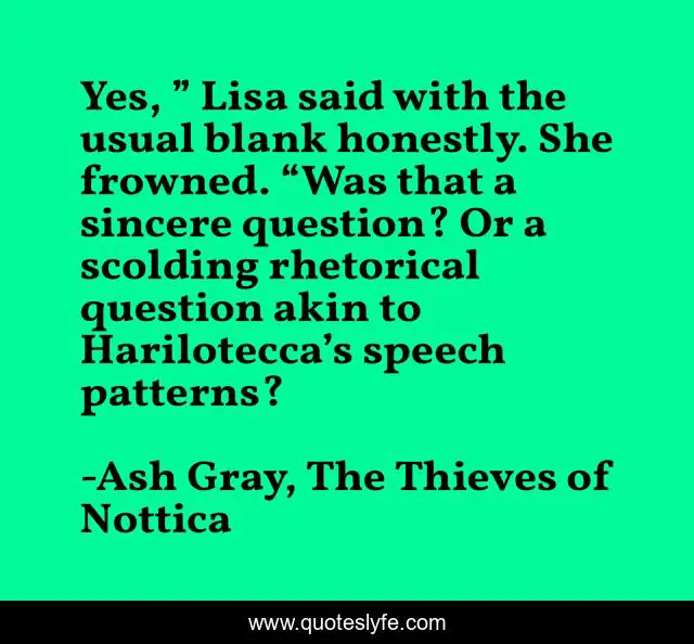 "Ash Gray, The Thieves of Nottica Quotes." Quoteslyfe.com, 2025. Fri. 05 Dec. 2025. <https://www.quoteslyfe.com/quote/Yes-Lisa-said-with-the-usual-blank-248354>.