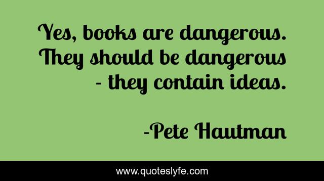 This page presents the quote "Yes, books are dangerous. They should be dangerous - they contain ideas.". Author of this quote is Pete Hautman. This quote is about intellectual-freedom, ideas, books, censorship, banned-books, freedom-to-read, banned-books-week,.