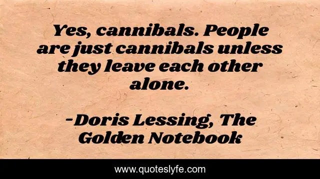 "Doris Lessing, The Golden Notebook Quotes." Quoteslyfe.com, 2025. Sat. 06 Dec. 2025. <https://www.quoteslyfe.com/quote/Yes-cannibals-People-are-just-cannibals-unless-71127>.