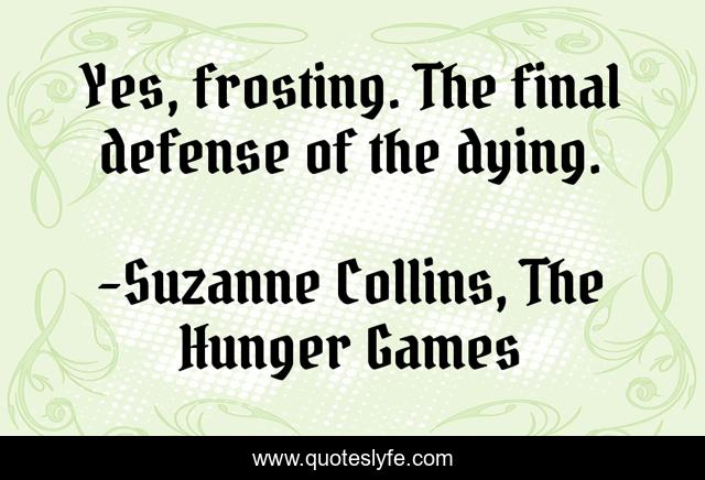 "Suzanne Collins, The Hunger Games Quotes." Quoteslyfe.com, 2025. Fri. 05 Dec. 2025. <https://www.quoteslyfe.com/quote/Yes-frosting-The-final-defense-of-the-5416>.