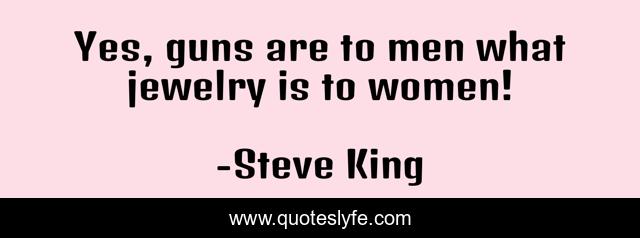 This page presents the quote "Yes, guns are to men what jewelry is to women!". Author of this quote is Steve King. This quote is about women, guns, jewelry,.