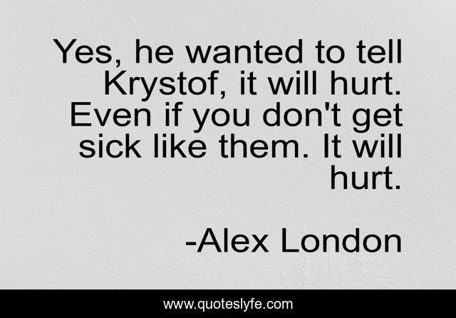 This page presents the quote "Yes, he wanted to tell Krystof, it will hurt. Even if you don't get sick like them. It will hurt.". Author of this quote is Alex London. This quote is about guardian, hurt,.