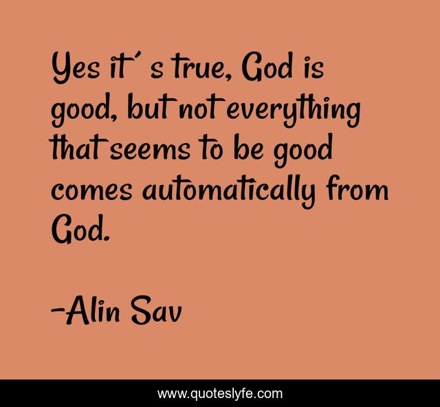 This page presents the quote "Yes it´s true, God is good, but not everything that seems to be good comes automatically from God.". Author of this quote is Alin Sav. This quote is about religion, spiritual,.
