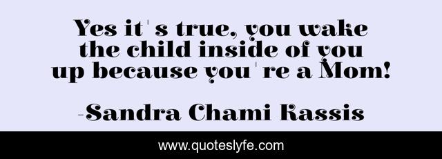 This page presents the quote "Yes it's true, you wake the child inside of you up because you're a Mom!". Author of this quote is Sandra Chami Kassis. This quote is about life, parenting, mothers, wisdom, motherhood, children,.