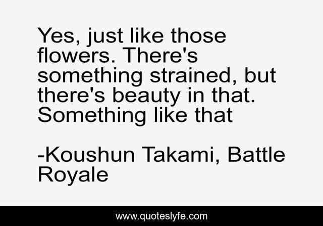 "Koushun Takami, Battle Royale Quotes." Quoteslyfe.com, 2025. Sat. 06 Dec. 2025. <https://www.quoteslyfe.com/quote/Yes-just-like-those-flowers-There-s-60587>.