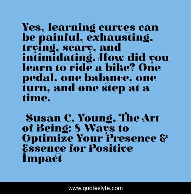 "Susan C. Young, The Art of Being: 8 Ways to Optimize Your Presence & Essence for Positive Impact Quotes." Quoteslyfe.com, 2025. Fri. 05 Dec. 2025. <https://www.quoteslyfe.com/quote/Yes-learning-curves-can-be-painful-exhausting-199349>.
