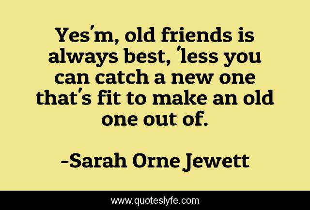 This page presents the quote "Yes'm, old friends is always best, 'less you can catch a new one that's fit to make an old one out of.". Author of this quote is Sarah Orne Jewett. This quote is about friendship, friends,.