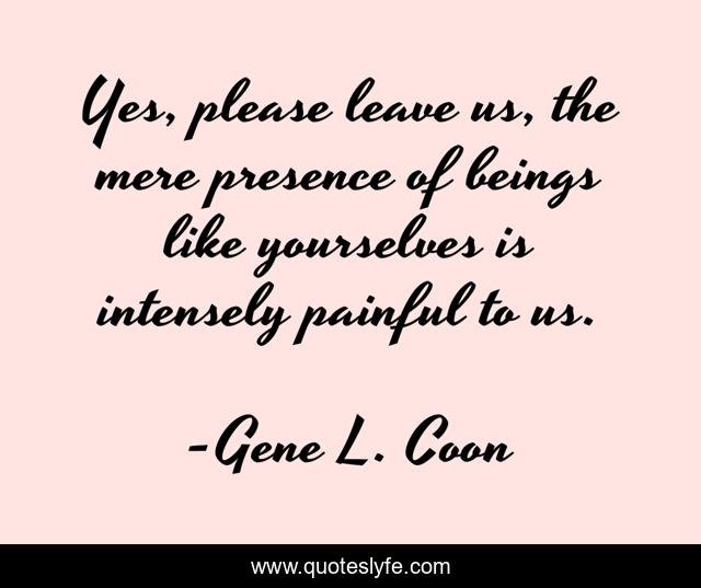 "Gene L. Coon Quotes." Quoteslyfe.com, 2025. Fri. 05 Dec. 2025. <https://www.quoteslyfe.com/quote/Yes-please-leave-us-the-mere-presence-166471>.