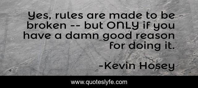 This page presents the quote "Yes, rules are made to be broken -- but ONLY if you have a damn good reason for doing it.". Author of this quote is Kevin Hosey. .