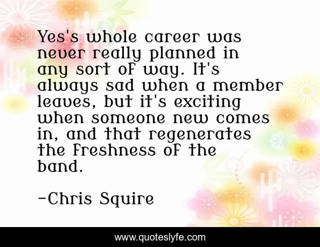 This page presents the quote "Yes's whole career was never really planned in any sort of way. It's always sad when a member leaves, but it's exciting when someone new comes in, and that regenerates the freshness of the band.". Author of this quote is Chris Squire. This quote is about career, new, way,.