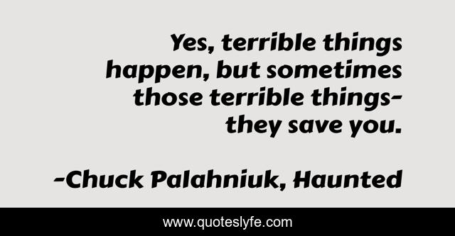 "Chuck Palahniuk, Haunted Quotes." Quoteslyfe.com, 2025. Sat. 06 Dec. 2025. <https://www.quoteslyfe.com/quote/Yes-terrible-things-happen-but-sometimes-those-4671>.