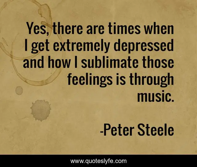 This page presents the quote "Yes, there are times when I get extremely depressed and how I sublimate those feelings is through music.". Author of this quote is Peter Steele. This quote is about depressed, through, feelings,.