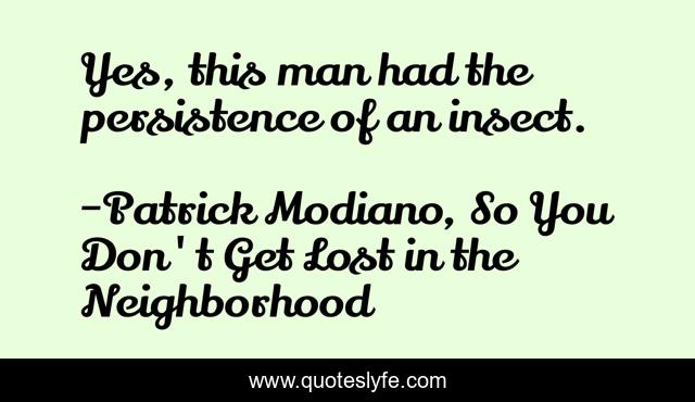 This page presents the quote "Yes, this man had the persistence of an insect.". Author of this quote is Patrick Modiano, So You Don't Get Lost in the Neighborhood. This quote is about insect, persistence,.
