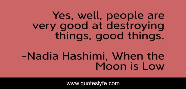 This page presents the quote "Yes, well, people are very good at destroying things, good things.". Author of this quote is Nadia Hashimi, When the Moon is Low. .