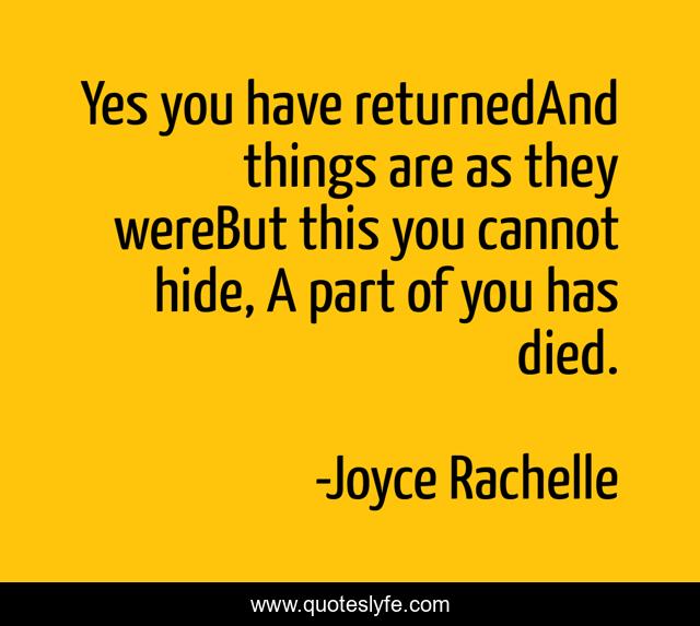 "Joyce Rachelle Quotes." Quoteslyfe.com, 2025. Mon. 15 Dec. 2025. <https://www.quoteslyfe.com/quote/Yes-you-have-returnedAnd-things-are-as-50749>.