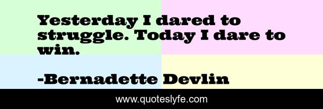 This page presents the quote "Yesterday I dared to struggle. Today I dare to win.". Author of this quote is Bernadette Devlin. .