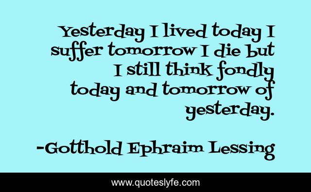 This page presents the quote "Yesterday I lived today I suffer tomorrow I die but I still think fondly today and tomorrow of yesterday.". Author of this quote is Gotthold Ephraim Lessing. .