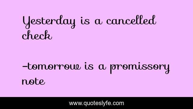 "tomorrow is a promissory note Quotes." Quoteslyfe.com, 2025. Fri. 05 Dec. 2025. <https://www.quoteslyfe.com/quote/Yesterday-is-a-cancelled-check-218115>.