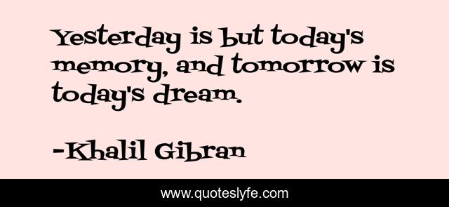 This page presents the quote "Yesterday is but today's memory, and tomorrow is today's dream.". Author of this quote is Khalil Gibran. This quote is about tomorrow, today, memory,.