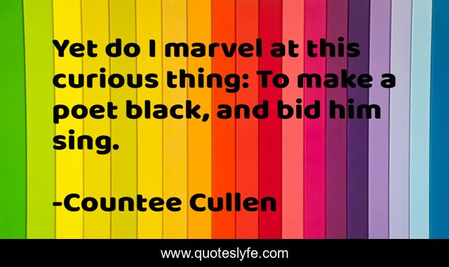 This page presents the quote "Yet do I marvel at this curious thing: To make a poet black, and bid him sing.". Author of this quote is Countee Cullen. This quote is about poet, yet-do-i-marvel, poetry, countee-cullen,.