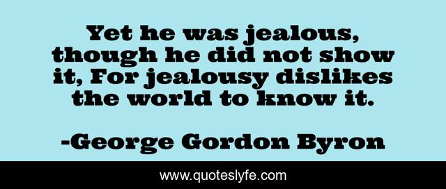 This page presents the quote "Yet he was jealous, though he did not show it, For jealousy dislikes the world to know it.". Author of this quote is George Gordon Byron. .