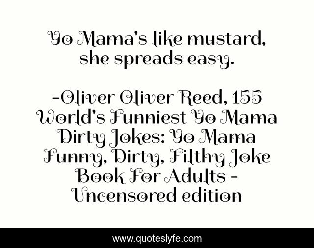 "Oliver Oliver Reed, 155 World's Funniest Yo Mama Dirty Jokes: Yo Mama Funny, Dirty, Filthy Joke Book For Adults - Uncensored edition Quotes." Quoteslyfe.com, 2025. Tue. 09 Dec. 2025. <https://www.quoteslyfe.com/quote/Yo-Mama-s-like-mustard-she-spreads-149556>.