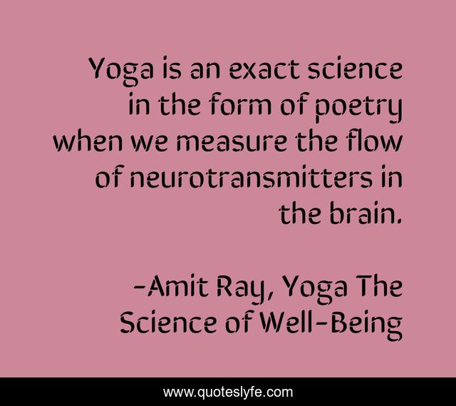 This page presents the quote "Yoga is an exact science in the form of poetry when we measure the flow of neurotransmitters in the brain.". Author of this quote is Amit Ray, Yoga The Science of Well-Being. This quote is about yoga, science, poetry, yoga-day-2017, international-yoga-day, exact-science, yoga-as-science,.