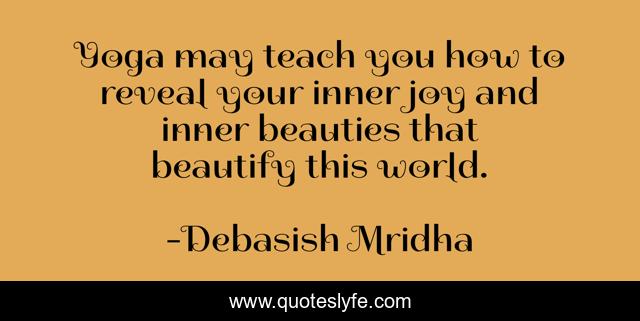 This page presents the quote "Yoga may teach you how to reveal your inner joy and inner beauties that beautify this world.". Author of this quote is Debasish Mridha. This quote is about yoga, philosophy, debasish-mridha, beauty-in-the-world, quotes, beautify-this-world, debasish-mridha-md, inspirational, inner-joy,.