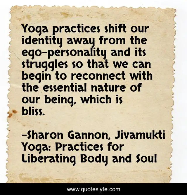 "Sharon Gannon, Jivamukti Yoga: Practices for Liberating Body and Soul Quotes." Quoteslyfe.com, 2025. Sat. 06 Dec. 2025. <https://www.quoteslyfe.com/quote/Yoga-practices-shift-our-identity-away-from-252014>.