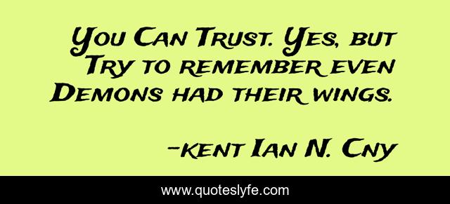 This page presents the quote "You Can Trust. Yes, but Try to remember even Demons had their wings.". Author of this quote is kent Ian N. Cny. .