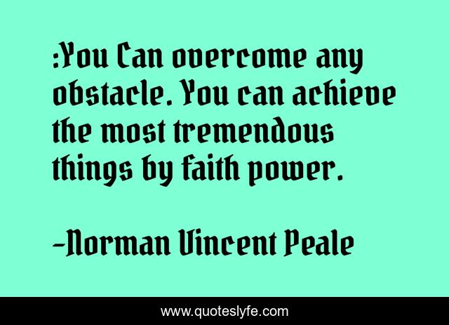 This page presents the quote ":You Can overcome any obstacle. You can achieve the most tremendous things by faith power.". Author of this quote is Norman Vincent Peale. .