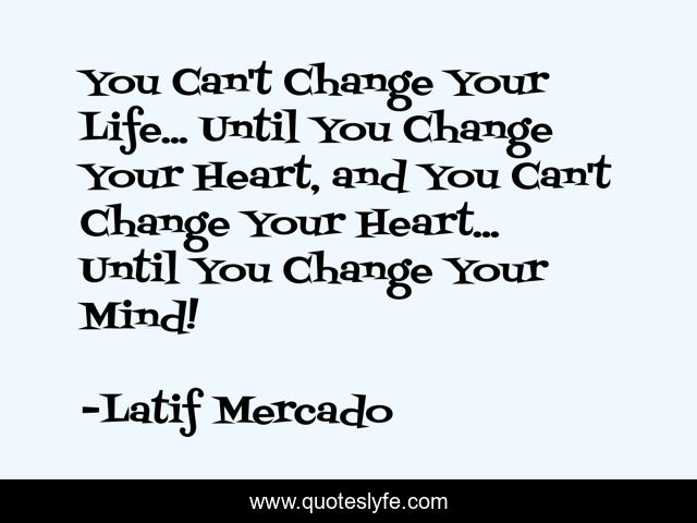 This page presents the quote "You Can't Change Your Life... Until You Change Your Heart, and You Can't Change Your Heart... Until You Change Your Mind!". Author of this quote is Latif Mercado. This quote is about urban, novel, author, freestyle, writer, books, music, latif, mercado,.