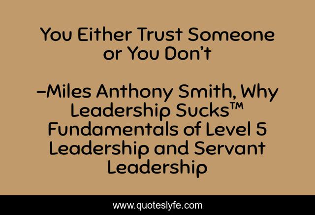 "Miles Anthony Smith, Why Leadership Sucks™ Fundamentals of Level 5 Leadership and Servant Leadership Quotes." Quoteslyfe.com, 2025. Fri. 05 Dec. 2025. <https://www.quoteslyfe.com/quote/You-Either-Trust-Someone-or-You-Don-194327>.