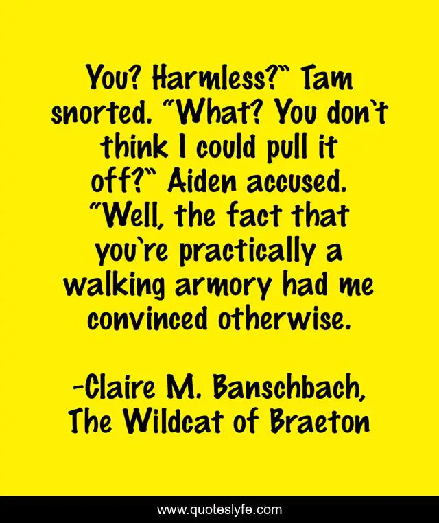 "Claire M. Banschbach, The Wildcat of Braeton Quotes." Quoteslyfe.com, 2025. Fri. 05 Dec. 2025. <https://www.quoteslyfe.com/quote/You-Harmless-Tam-snorted-What-You-don-82765>.