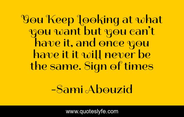 This page presents the quote "You Keep Looking at what you want but you can’t have it, and once you have it it will never be the same. Sign of times". Author of this quote is Sami Abouzid. This quote is about love, affection,.