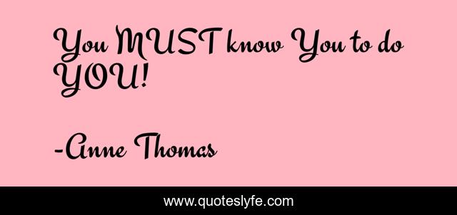 "Anne Thomas Quotes." Quoteslyfe.com, 2025. Mon. 08 Dec. 2025. <https://www.quoteslyfe.com/quote/You-MUST-know-You-to-do-YOU-106365>.