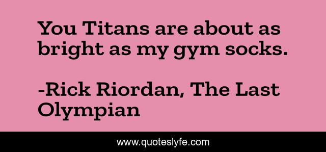 This page presents the quote "You Titans are about as bright as my gym socks.". Author of this quote is Rick Riordan, The Last Olympian. .