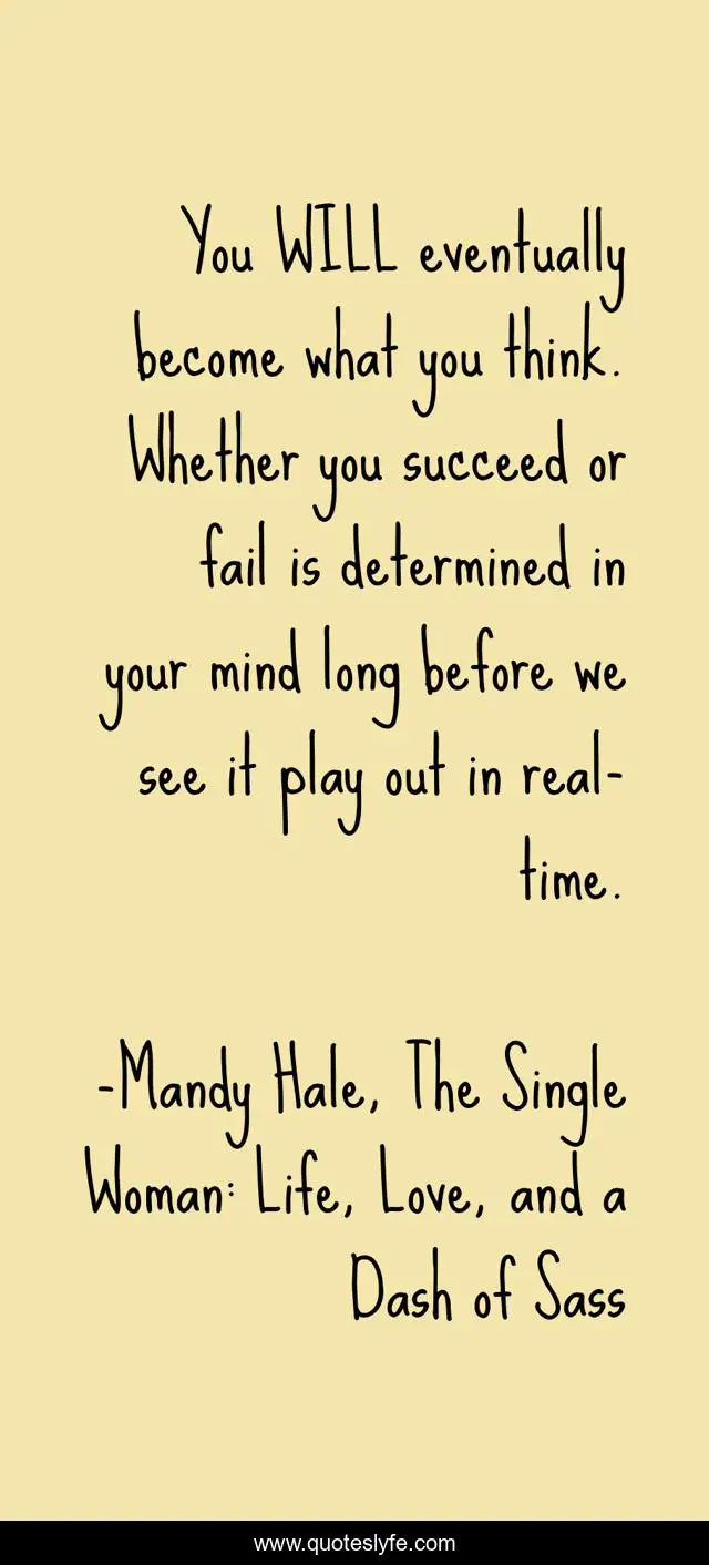 "Mandy Hale, The Single Woman: Life, Love, and a Dash of Sass Quotes." Quoteslyfe.com, 2025. Sun. 07 Dec. 2025. <https://www.quoteslyfe.com/quote/You-WILL-eventually-become-what-you-think-95588>.