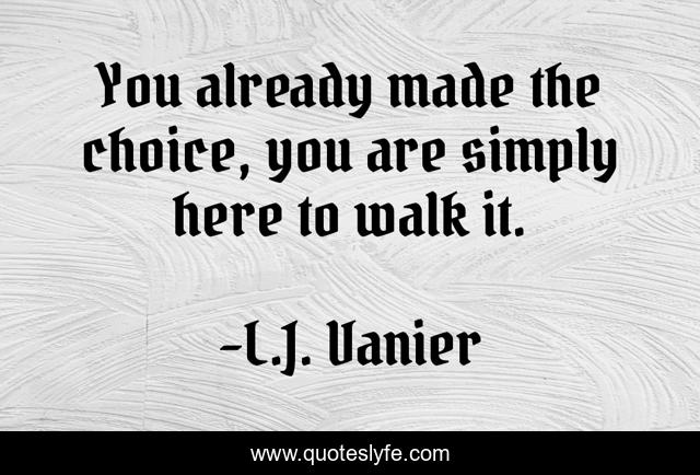 This page presents the quote "You already made the choice, you are simply here to walk it.". Author of this quote is L.J. Vanier. This quote is about life-choices, choice, choices,.