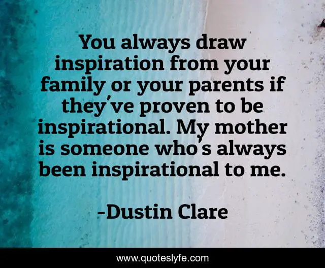 This page presents the quote "You always draw inspiration from your family or your parents if they've proven to be inspirational. My mother is someone who's always been inspirational to me.". Author of this quote is Dustin Clare. This quote is about parents, family, mother,.