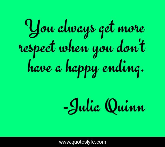 This page presents the quote "You always get more respect when you don't have a happy ending.". Author of this quote is Julia Quinn. This quote is about romance, writing,.