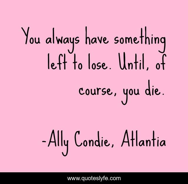 This page presents the quote "You always have something left to lose. Until, of course, you die.". Author of this quote is Ally Condie, Atlantia. This quote is about loss, death,.
