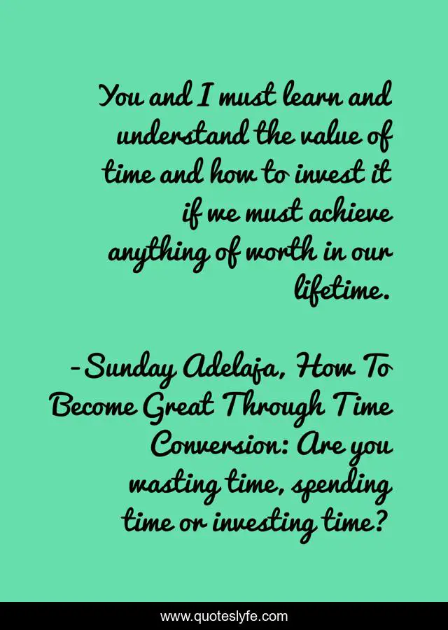 "Sunday Adelaja, How To Become Great Through Time Conversion: Are you wasting time, spending time or investing time? Quotes." Quoteslyfe.com, 2025. Sat. 06 Dec. 2025. <https://www.quoteslyfe.com/quote/You-and-I-must-learn-and-understand-39336>.