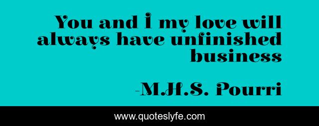 This page presents the quote "You and I my love will always have unfinished business". Author of this quote is M.H.S. Pourri. This quote is about dominant, love-story,.