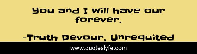 "Truth Devour, Unrequited Quotes." Quoteslyfe.com, 2025. Fri. 05 Dec. 2025. <https://www.quoteslyfe.com/quote/You-and-I-will-have-our-forever-171856>.