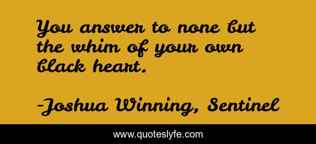 This page presents the quote "You answer to none but the whim of your own black heart.". Author of this quote is Joshua Winning, Sentinel. This quote is about black-heart, demon, evil, fantasy,.