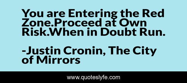 "Justin Cronin, The City of Mirrors Quotes." Quoteslyfe.com, 2025. Fri. 05 Dec. 2025. <https://www.quoteslyfe.com/quote/You-are-Entering-the-Red-Zone-Proceed-240266>.
