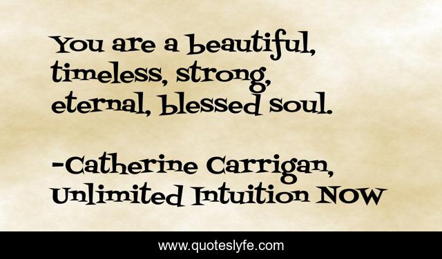 This page presents the quote "You are a beautiful, timeless, strong, eternal, blessed soul.". Author of this quote is Catherine Carrigan, Unlimited Intuition NOW. .